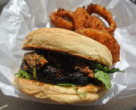 The line-up includes a Kobe burger adorned with the same ingredients as Bert’s standard burger, but hey, we’re talking some of the most decadently oleaginous beef around. It’s the most expensive of the five gourmet burgers. The other four newcomers are a lamb burger (topped with pineapple chunks, chopped cilantro and pastor sauce), a pork burger (crafted with red chile and mashed beans ala San Antonio, Texas style), an ostrich burger (also bedecked with the ingredients found in Bert’s standard burger) and a bison burger.