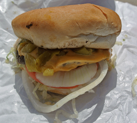 Each burger is made to order. It takes about 12 minutes per order (and as long as 15 minutes for the lamb burger) which means your burgers don’t sit under a heat lamp. The meat is invariably well seasoned and the condiments are unfailingly fresh with crisp onion, fresh tomato, pickle slices and piquant green chile (Bert’s uses 120 pounds per week). The green chile cheeseburger is the reason Guy Fieri of the Food Network’s Diners, Drive-Ins and Dives visited Bert’s in September, 2008. The signed poster on display under glass at Bert’s displays Fieri’s sentiments toward that burger: “You gotta love Bert’s green chile cheeseburger.”
