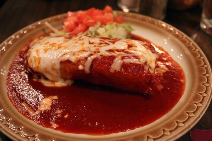 The menu includes many traditional New Mexican food favorites: enchiladas, chile rellenos, tacos, carne adovada, stuffed sopaipillas, burritos, taco salad and more. House specialties include bowls of red or green chile with two flour tortillas and butter, posole, a New York cut steak and a unique Cervantes twist on the traditional New Mexico green chile cheeseburger. This burger is crafted with a three-quarter pound of lean ground sirloin served open-faced on your choice of tortilla, French bread or a sopaipilla. It’s quite good.