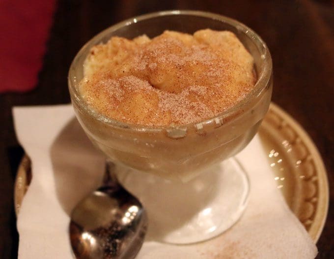 17 July 2016: Even after polishing off the sopaipillas with honey, do yourself a favor and order either natillas or flan for dessert. The natillas are exemplars of what natillas should be–a creamy custard made with milk, eggs, sugar, vanilla and cinnamon. Ask for lots of cinnamon, an ameliorant which imbues the natillas with a fragrant bouquet you’ll enjoy as you’re spooning up the light, delicate (never lumpy at Cervantes) natillas.