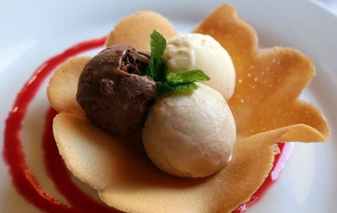 15 August 2015:Ice cream used to be my Kim’s fallback dessert, the one to which she would resort if none of the other post-prandial treats enticed her. Over the years she’s happened upon so many excellent ice cream flavors that ice cream has now become her first choice. The Cantina’s ice cream trio validated her stance. A generous bowlful of three creamy, delicious, texturally delightful ice creams—cognac ice cream, canela chocolate ice cream and vanilla—proved swoon-worthy and satisfying to the greatest extent of the word. Only half-gallon sized portions could have made this triumvirate better for her.