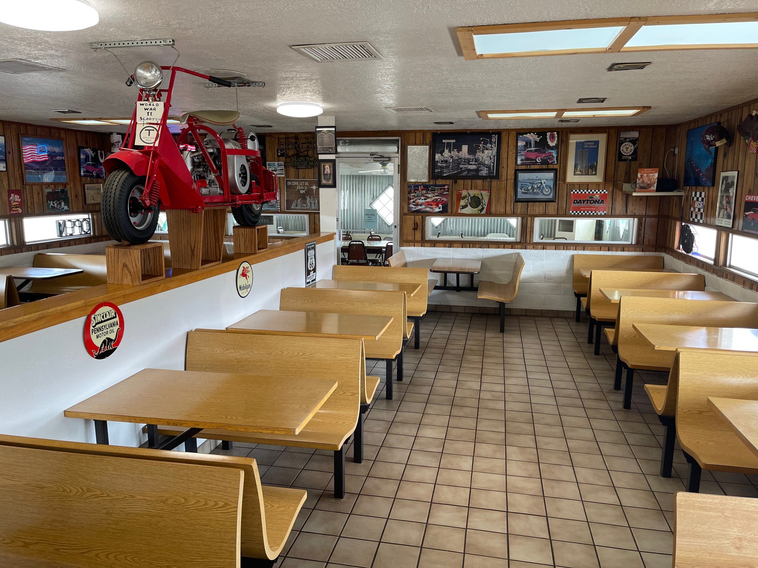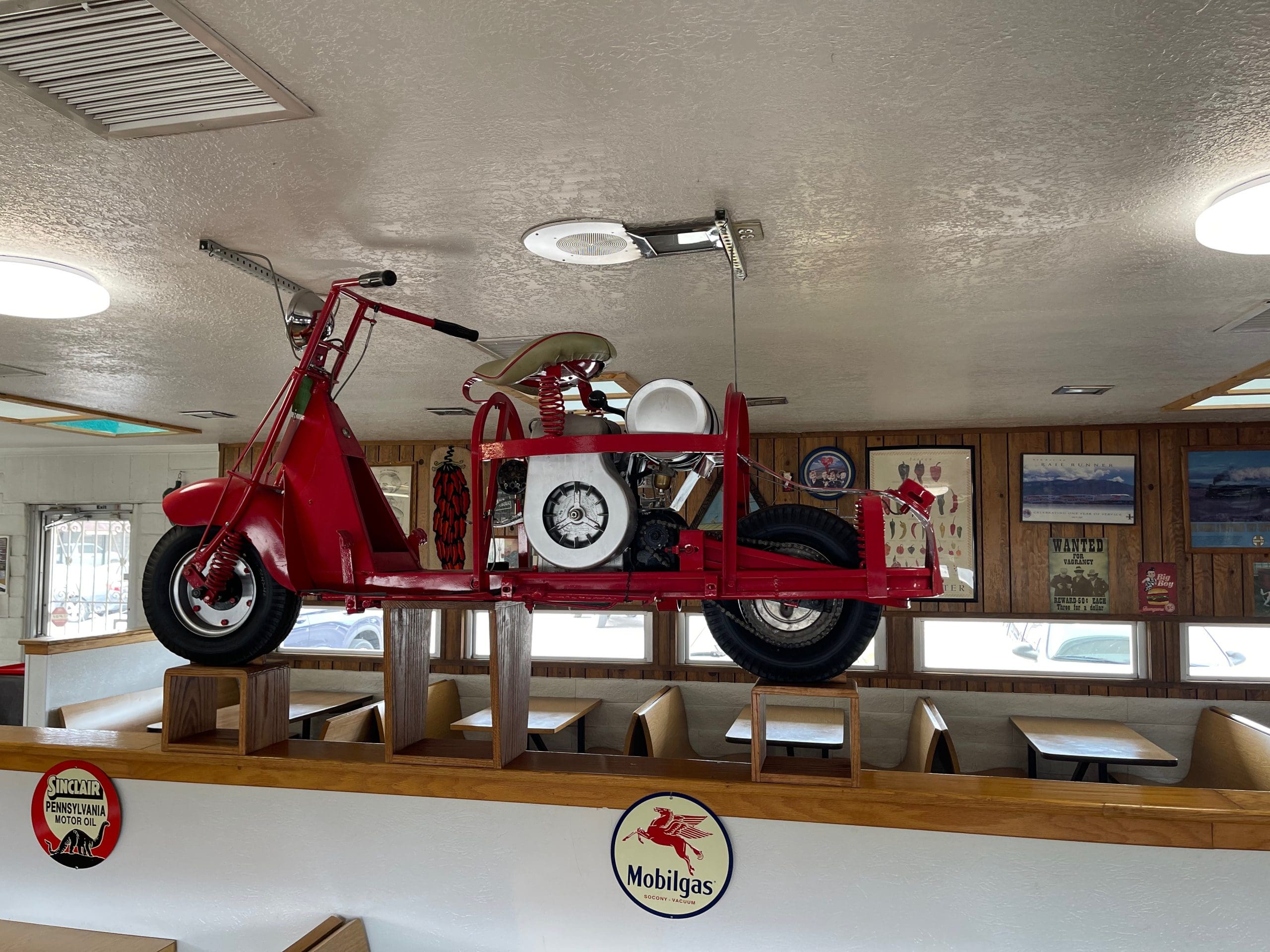Tabet was a pioneer of sorts, introducing green chile on his restaurant’s burgers at a time when America’s love affair with the hamburger was just starting to ramp up. Though it might surprise New Mexicans, almost no one in Valencia county was showcasing the area’s fantastic green chile on their burgers until Tabet led the way. Soon other restaurants followed and the rest, as the proverbial “they” say is history. Generations of Belen residents grew up on the Circle T’s food and remain steadfastly loyal today. Gilbert Tabet passed away several years ago, but the restaurants he founded are in good hands with scion Phillip Tabet. Phillip is a fountain of knowledge, especially of Belen history. Moreover, he’s a nice guy and great host. He’s happy to tell you about the World War II scooter that bisects the restaurant’s two seating areas.