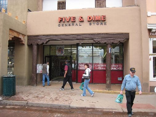 (As an aside for historians: Whoa! right to the right of the Five & Dime is a Haagen Dazs ice cream parlor. Early on, it was Zook’s Pharmacy where reportedly, a Russian KGB dude, allegedly seduced the pharmacist’s daughter (pun intended)! More significantly however (well, depending on your point of view), it is reported that the assassination of Leon Trotsky was planned therein!!! Check this source http://tinyurl.com/ak8x7dp here or your library ala A Spy’s Guide to Santa Fe and Albuquerque http://tinyurl.com/ak8x7dp. A delightful read; make a tree of spy’s names and code names to facilitate your reading. E.g. What happened in/around Santa Fe’s Geronimo’s; what is the Spy House on High St. in ABQ all about? http://tinyurl.com/3sdgsuh click ‘Atom Bomb secrets…’ article.