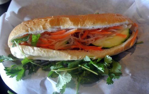 The canvas for Viet Q’s banh mi is a warm baguette which is crispy on the outside and pillowy soft on the inside which is stuffed with a number of robust herbs and vegetables such as coriander, parsley, jalapeño, daikon, cucumber and carrots along with your choice of meat (pork is an excellent option). It’s a scrumptious sandwich that will wake up your palate. It’s not, however, an Americanized “Dagwood” sandwich overstuffed with ingredients, but the ingredients that it does have are indeed symphonic in the way they coalesce into absolute deliciousness.