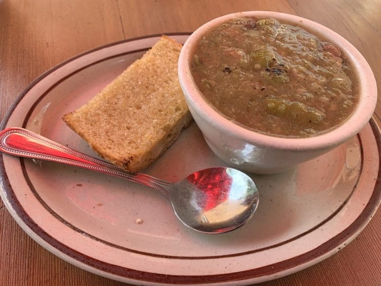 The red chile at the Santa Fe restaurants is brick red and deeply earthy with a slightly sweet taste you remember long after your meal–so good you might never order the restaurant’s green chile (which would be a mistake because the green chile is outstanding in its own right as you’ll quickly find out should you order the frijoles con chile verde). Still, the red chile is the quintessential New Mexico chile–the result of the ownership purchasing the entire chile bounty of two Hatch, New Mexico chile fields. Red chile is ground every day in the restaurant’s mills to prevent oxidization and ensure freshness.