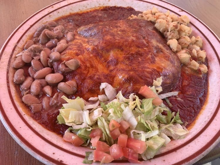 As with its sibling, you may have to wait a while to be escorted to a free table. Patio dining in the summer and dining by the aromatic fire of a wood-burning stove in the winter make it an every season favorite. Also like The Shed, La Choza has enjoyed the national television spotlight. In May, 2014, the Travel Channel’s “Chow Masters” program aired an episode entitled “Santa Fe Burritos” in which three purveyors of bounteous burritos were pitted in a piquant melee: La Choza and Dr. Field Goods Kitchen in Santa Fe and Hurricane’s Cafe in Albuquerque. Judging was based on creativity and flavor. The ten thousand dollar burrito winner was Dr. Field Goods who wowed the judges with a smoked goat chimichanga in mole. Many locals would argue that La Choza’s offering, its famous chile relleno burrito, should at least have garnered a tie.