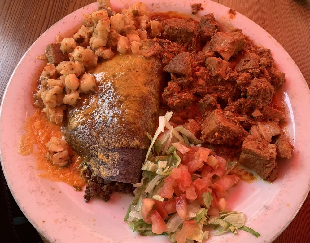 El Choza’s pinto beans are slow-simmered and served just-off-the-stove warm. It’s no wonder they’re the most traditional New Mexican comfort dish and one of New Mexico’s two official state vegetables. White corn posole with shards of pork (unless you request vegetarian) is just as wonderful. In fact, very few New Mexican restaurants serve posole quite as good.