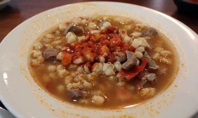 10 April 2016: During our visits to the Mountain Road location, we concluded Cocina Azul’s posole just might be the best in the city. For one thing, it looked and tasted like posole and not Southern hominy (yes, there is a difference). The posole (nixtamilized corn kernels slaked in lime water sans husk) was of a perfect consistency, swimming in a large bowl of red chile and tender chunks of pork. This was New Mexican comfort food at its finest, one of those dishes that truly can make your heart happy.