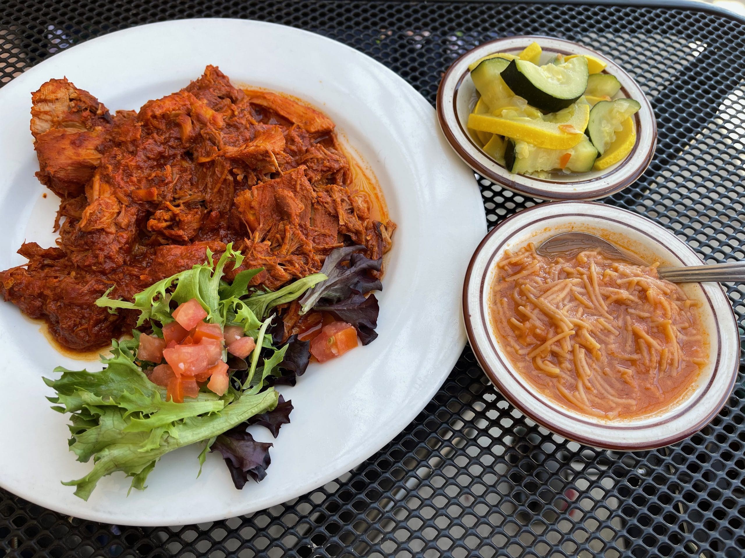 10 April 2016: Unlike at so many other New Mexican restaurants, Cocina Azul doesn’t limit the sides that come with your entrees to the de rigueur rice and beans. Items on the “Platos de Nuevo Mexico” section of the menu include your choice of two sides including whole beans, fideos, calabasitas, rice and more. The whole beans are an exemplar of how New Mexico’s “other” official state vegetable should be prepared. For a unique treat, ask for the fideos, an unassuming short, thin and slightly curved pasta served in a tomato sauce. Fideos have been served in Spain since the 13th century.